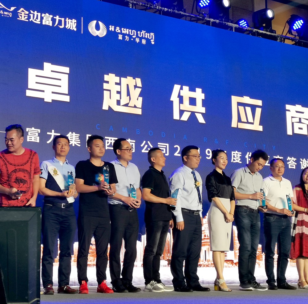 2019年6月21日,由广州富力集团主办的以“同心同力,遇柬未来”为主题的2019年度供应商答谢会在重庆举行,开元网页版_开元(中国)公司“红棉花板材”凭借其高质量的产品、优质的客户服务及强大的市场竞争力,从市场上众多品牌中脱颖而出,荣获“富力集团2019年度卓越供应商”称号!